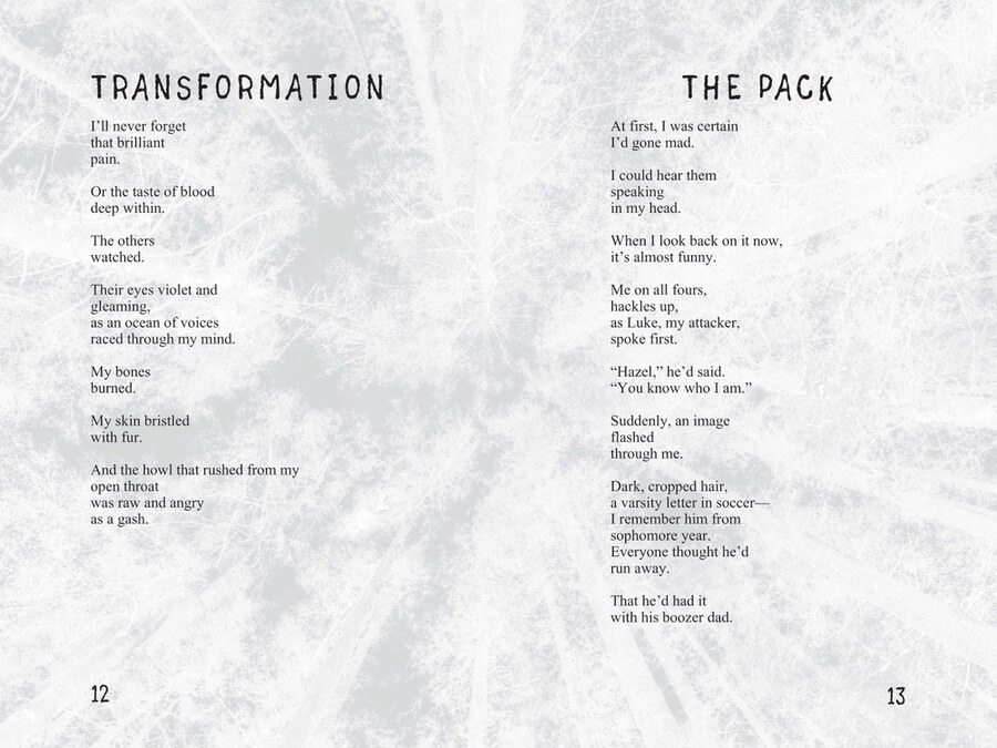 Hazel lived with her younger sister Willa and her father in a small coastal town in Maine-- until she was attacked and bitten by a werewolf. Now, without much of a choice, Hazel must join a pack of werewolves whose primary mission is to save the wild wolf population and their ever-decreasing territory at the edges of town. The pack aims to stop wealthy developer Ned Paris from leveling their forest and constructing a sprawling, all-season resort. If Ned is successful, acres of precious habitat will be lost. If the wolf pack is going to destroy the construction site and scare humans away, they'll need Hazel's help—even if it means people will die. But her father depends on the construction work for a living, and Willa was just hired at the site. Hazel must make a difficult decision: should she protect her family, or is her allegiance to her new kind?